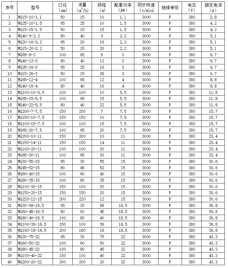 新一代WQ型污水泵除了具有無堵塞、防纏繞、節(jié)能效果優(yōu)良等特點外,公司自創(chuàng)的高精度泵體,雙流道的葉輪流道設計,大幅度提高流道通過性能,在使用過程中,效率高,功率曲線平坦,不易過載。